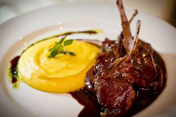 Carré de Cordeiro ao Vinho Tinto com Polenta Cremosa